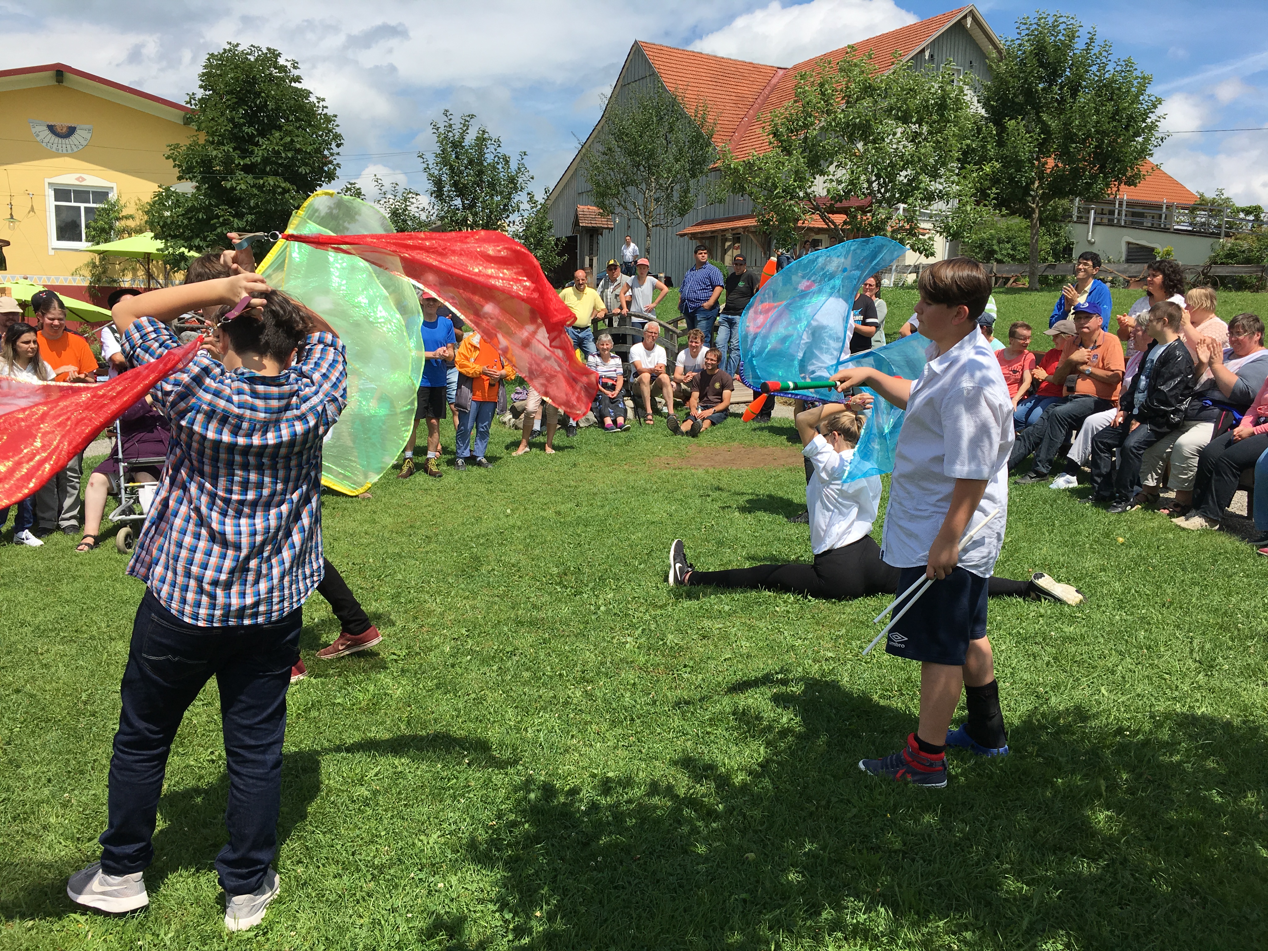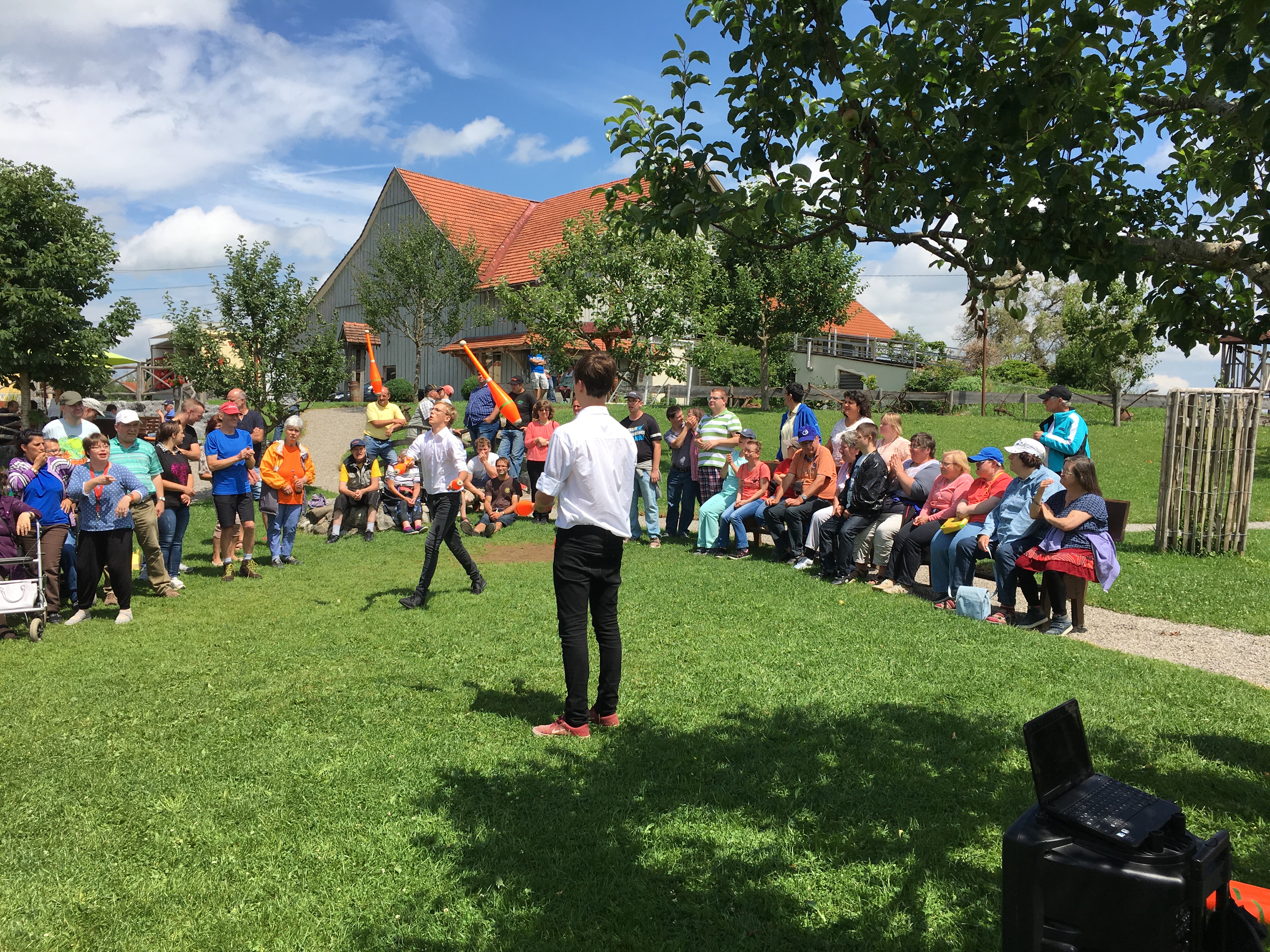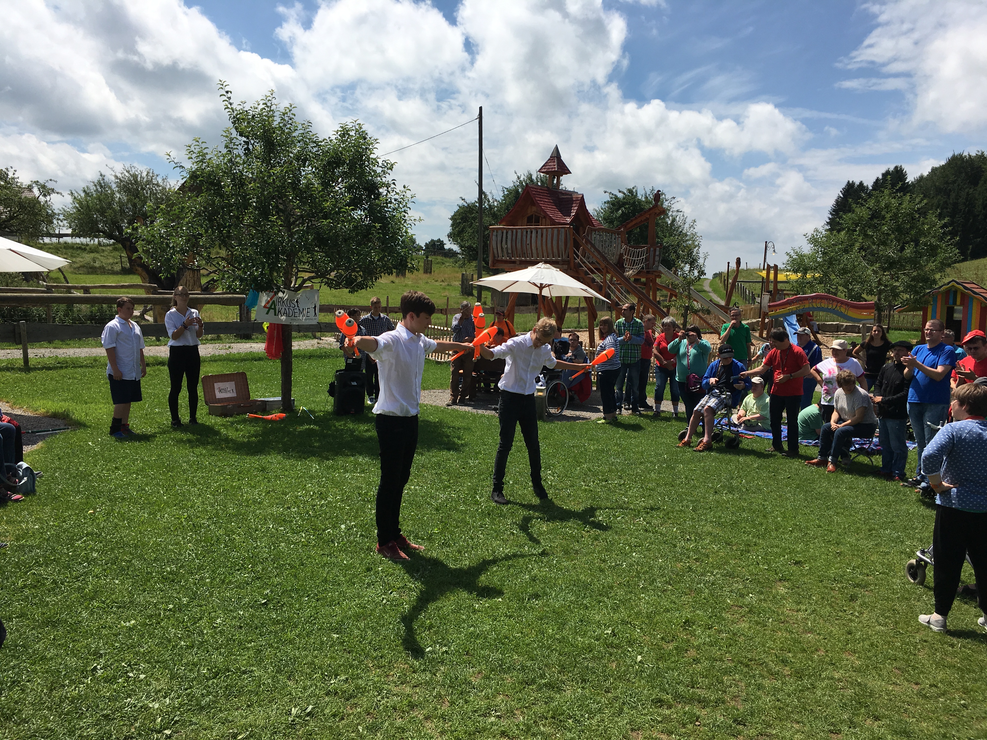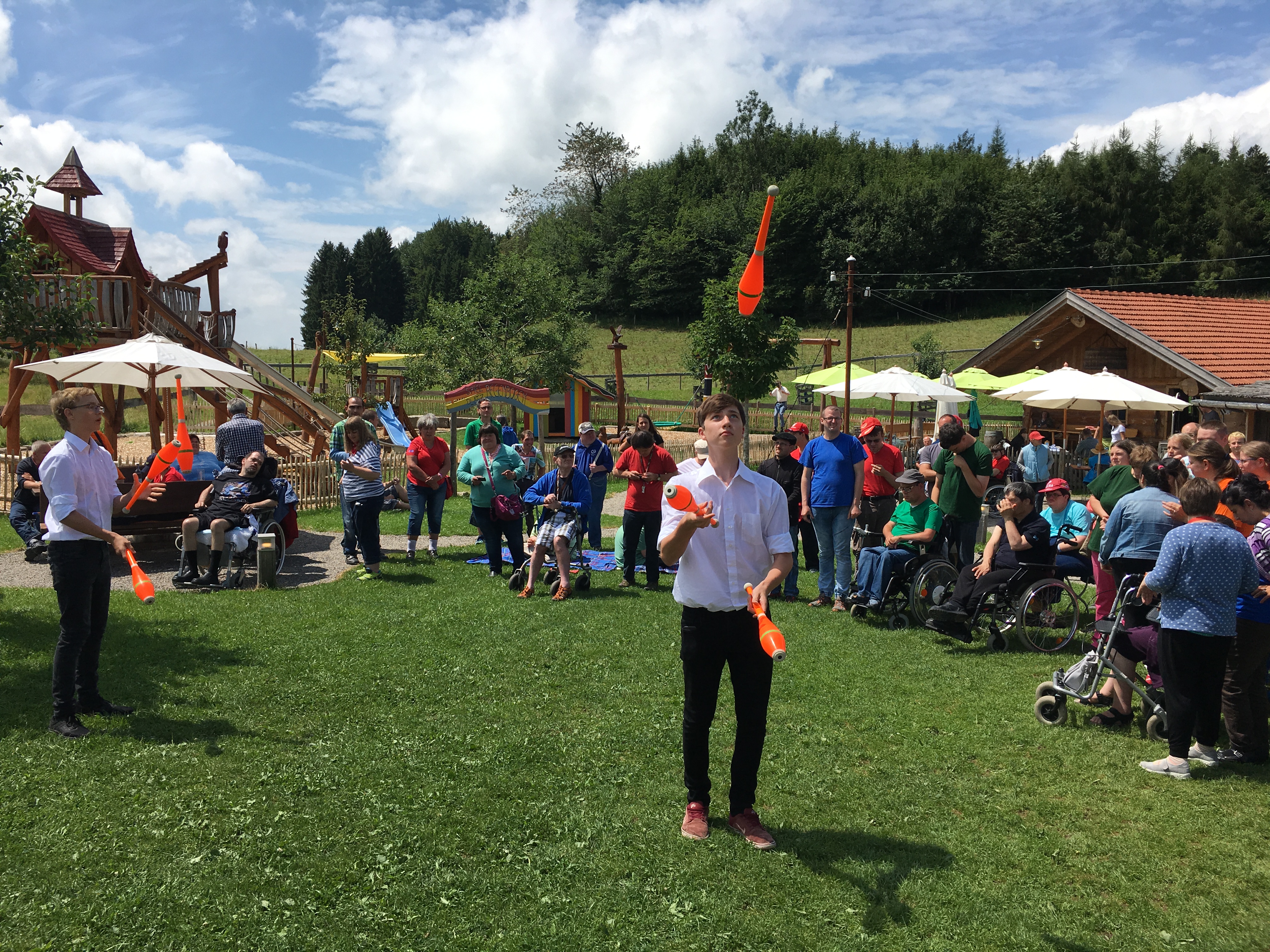Auf ins Allgäu. Die Werkstätten der OWB feierten ihr Sommerfest. Eine Jonglage-Show unter freiem Himmel.