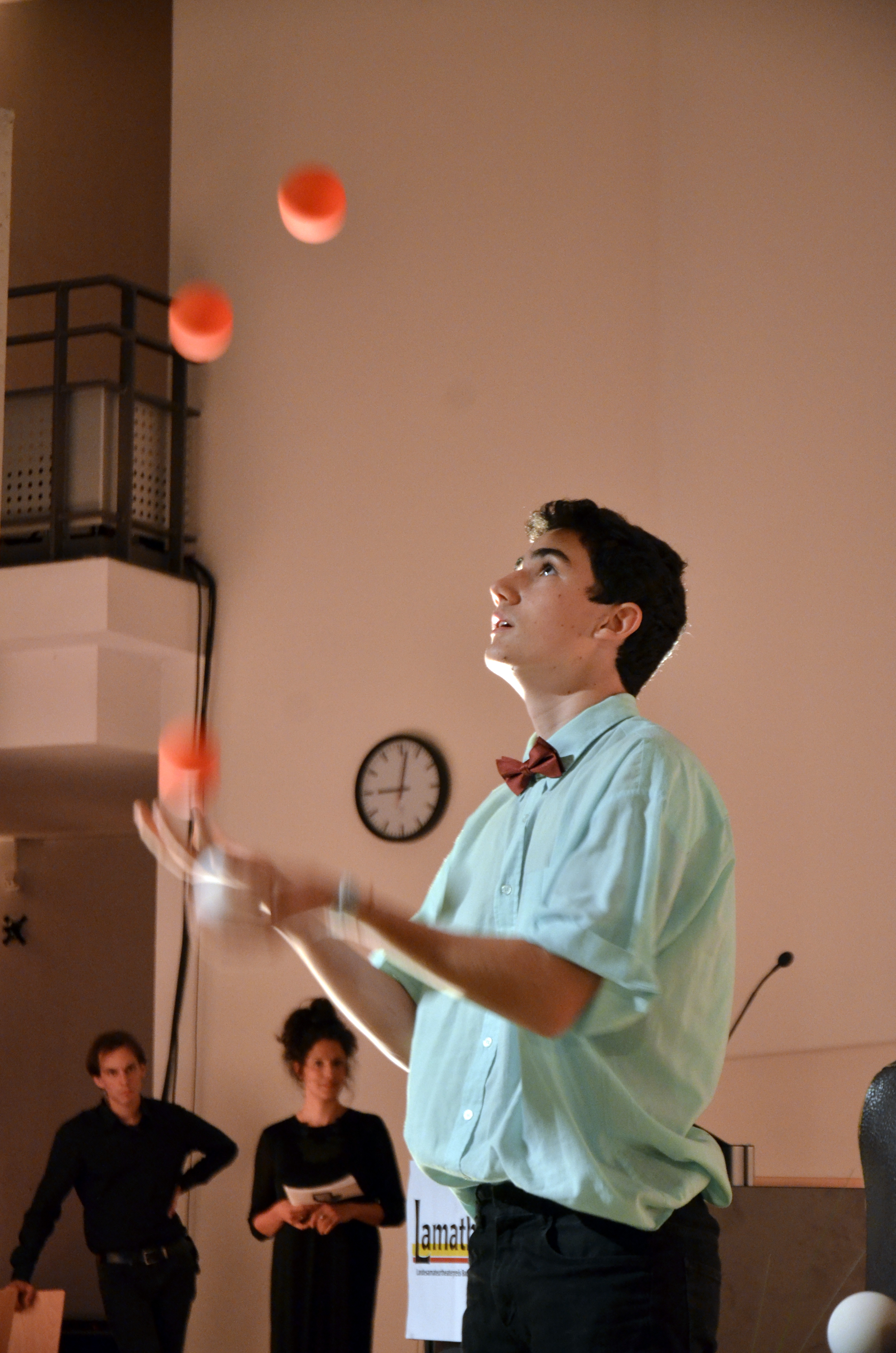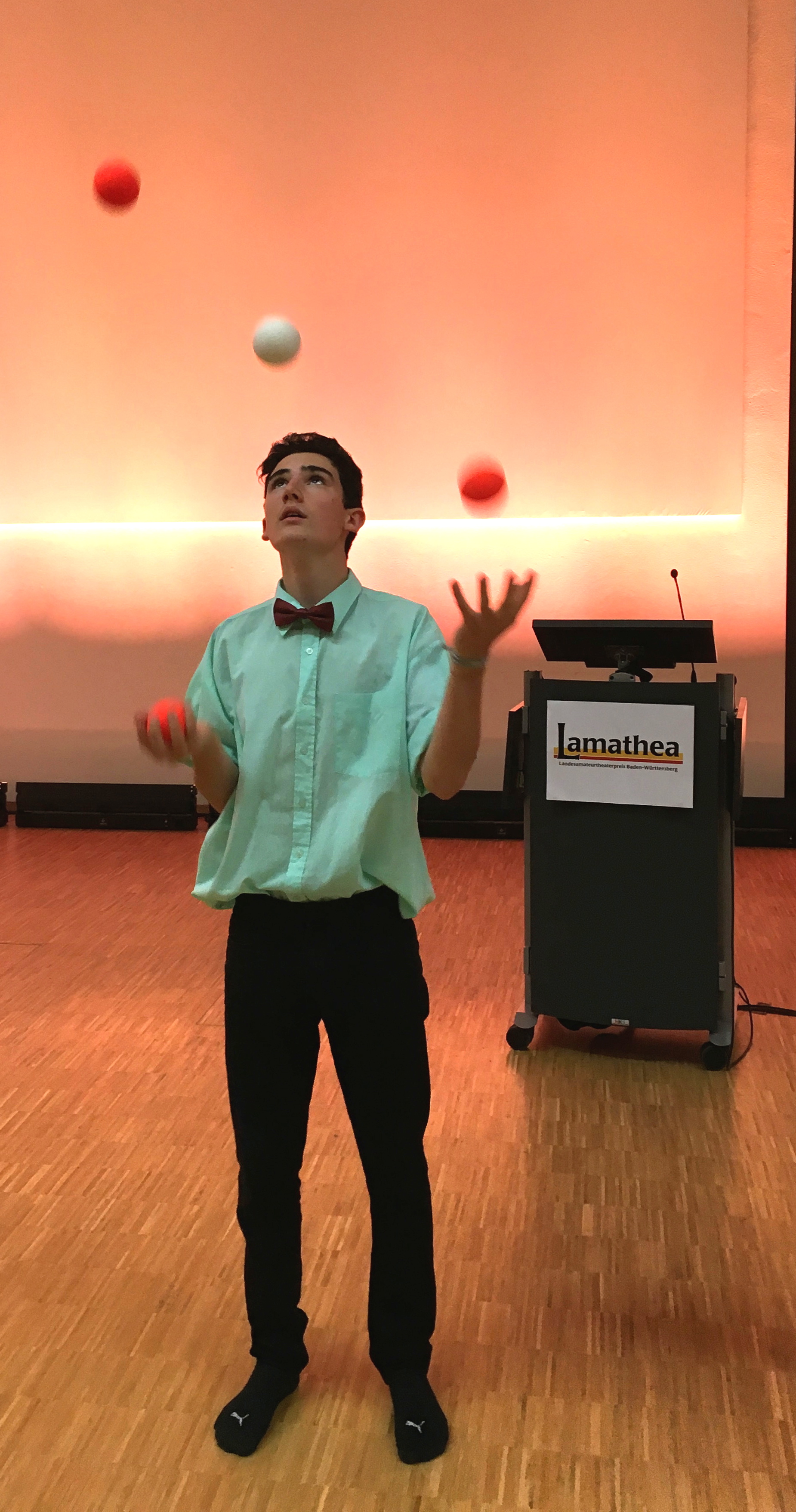 Landesamateurtheater-Preis Baden Württemberg 2017 der Kategorie "Lebenswerk und Bürgerschaftliches Engagement" geht an die Bodensee Schule St. Martin in Friedrichshafen. Die ZirkusAkademie umrahmte die Zeremonie feierlich mit Ball-Jonglage und Feuershow.