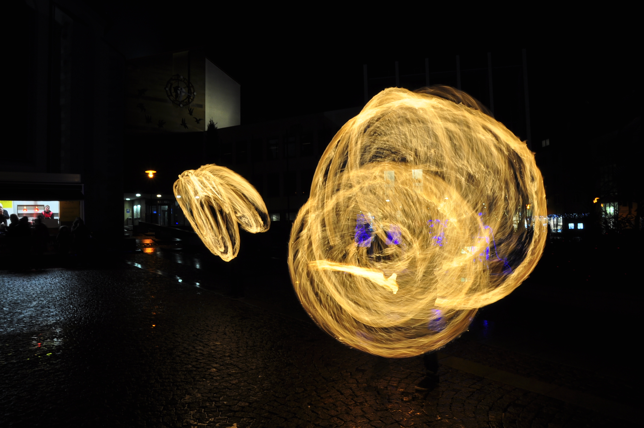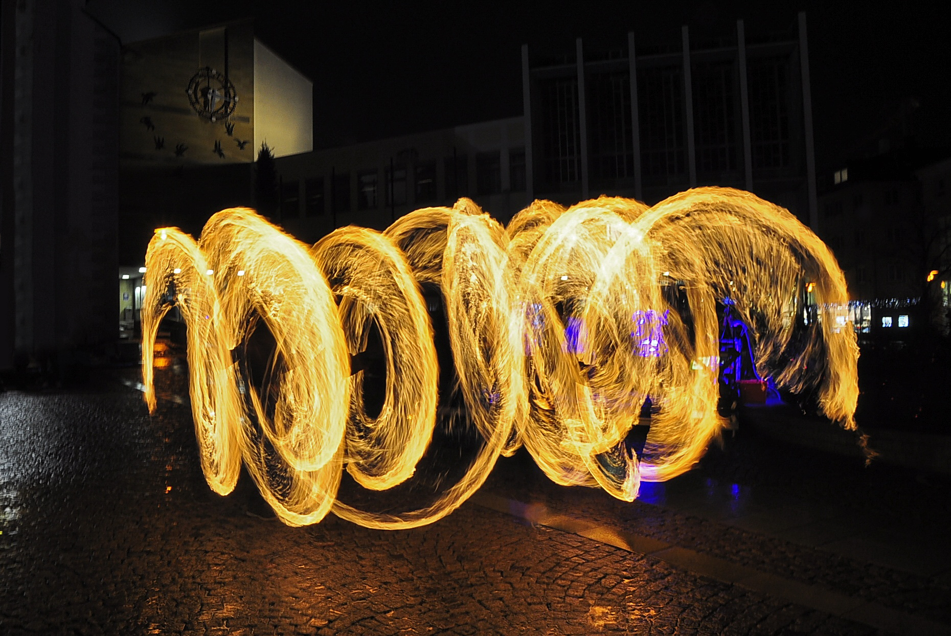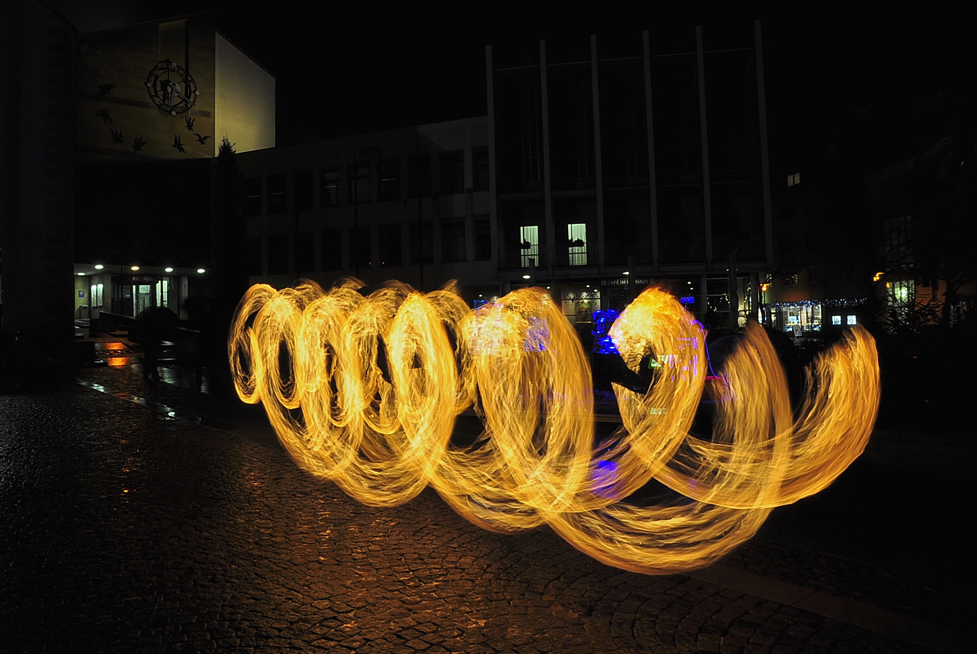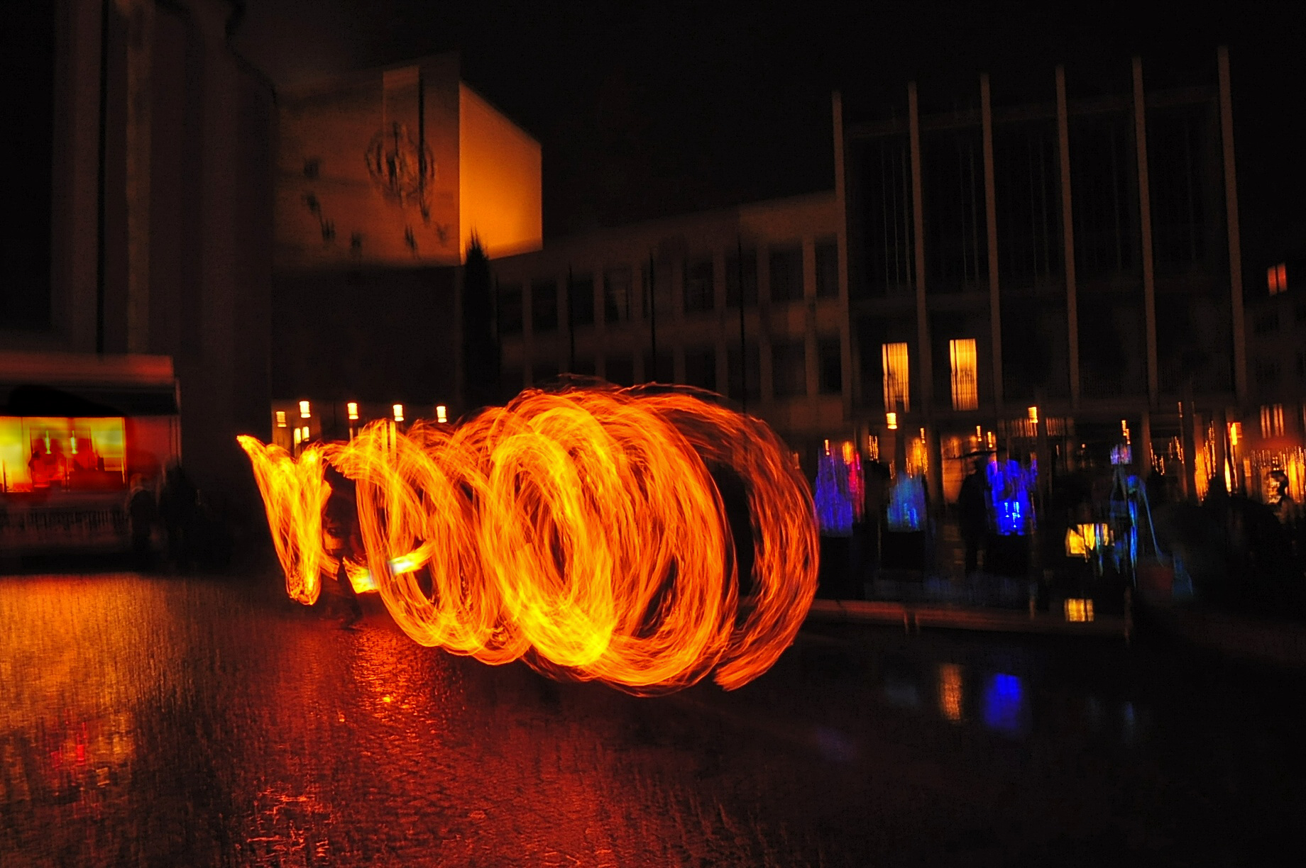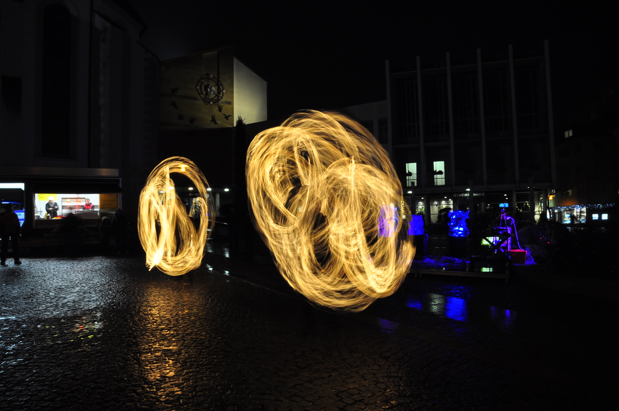 Feuer und Eis... auf dem Adenauerplatz in Friedrichshafen. Ein "Spiel" der Elemente. Die ZirkusAkademie "umspielt" den Eiskünstler.