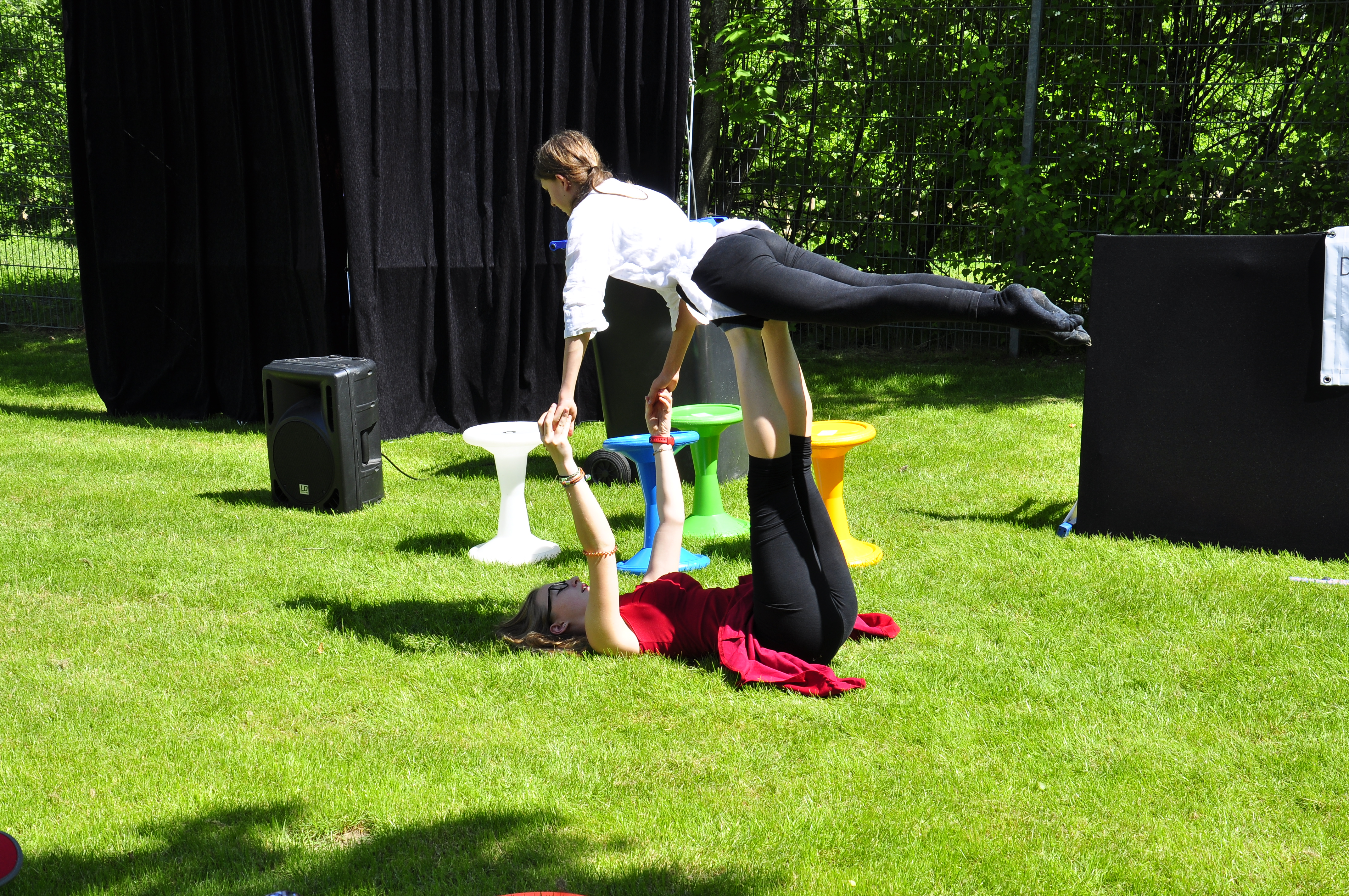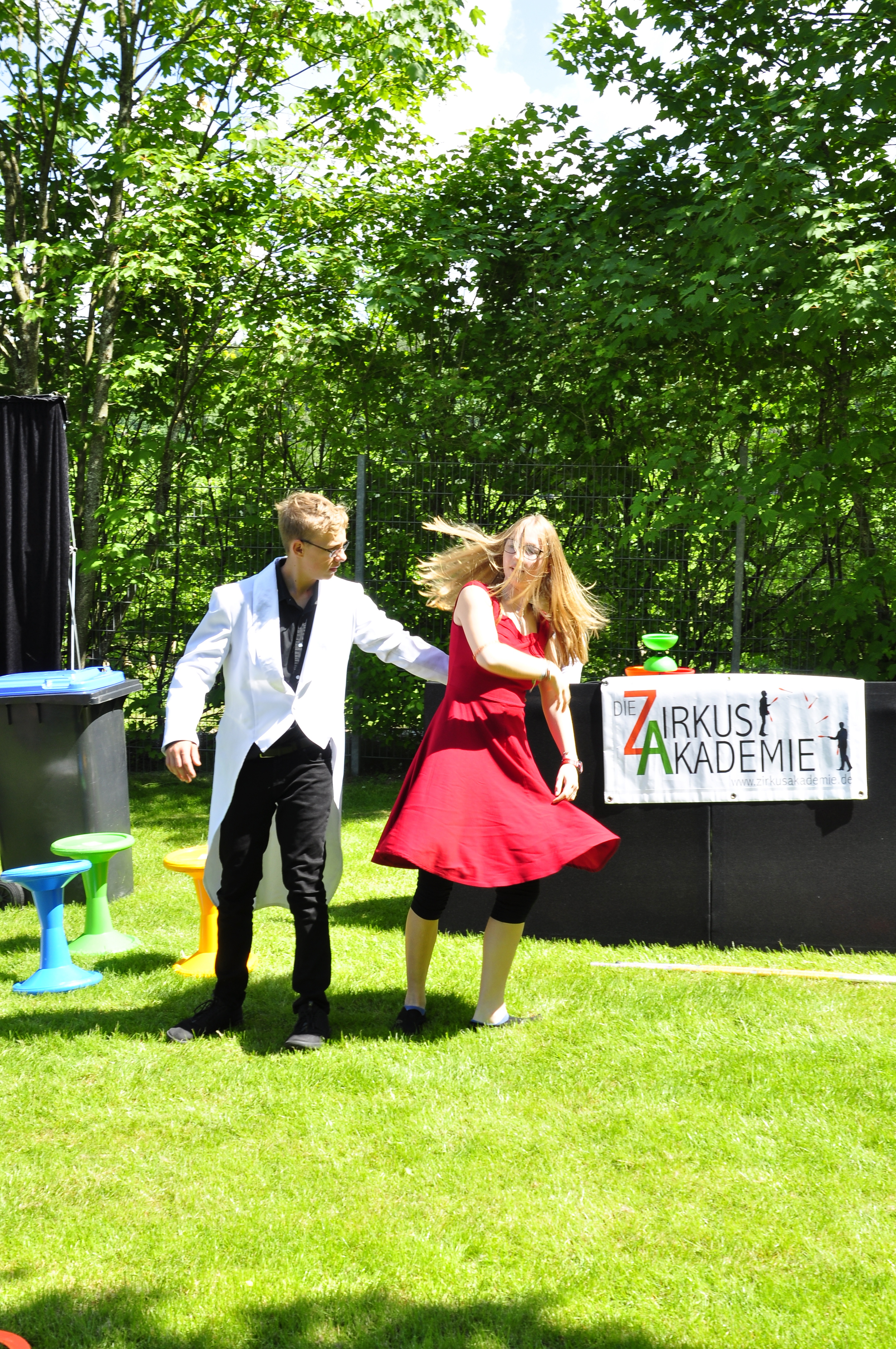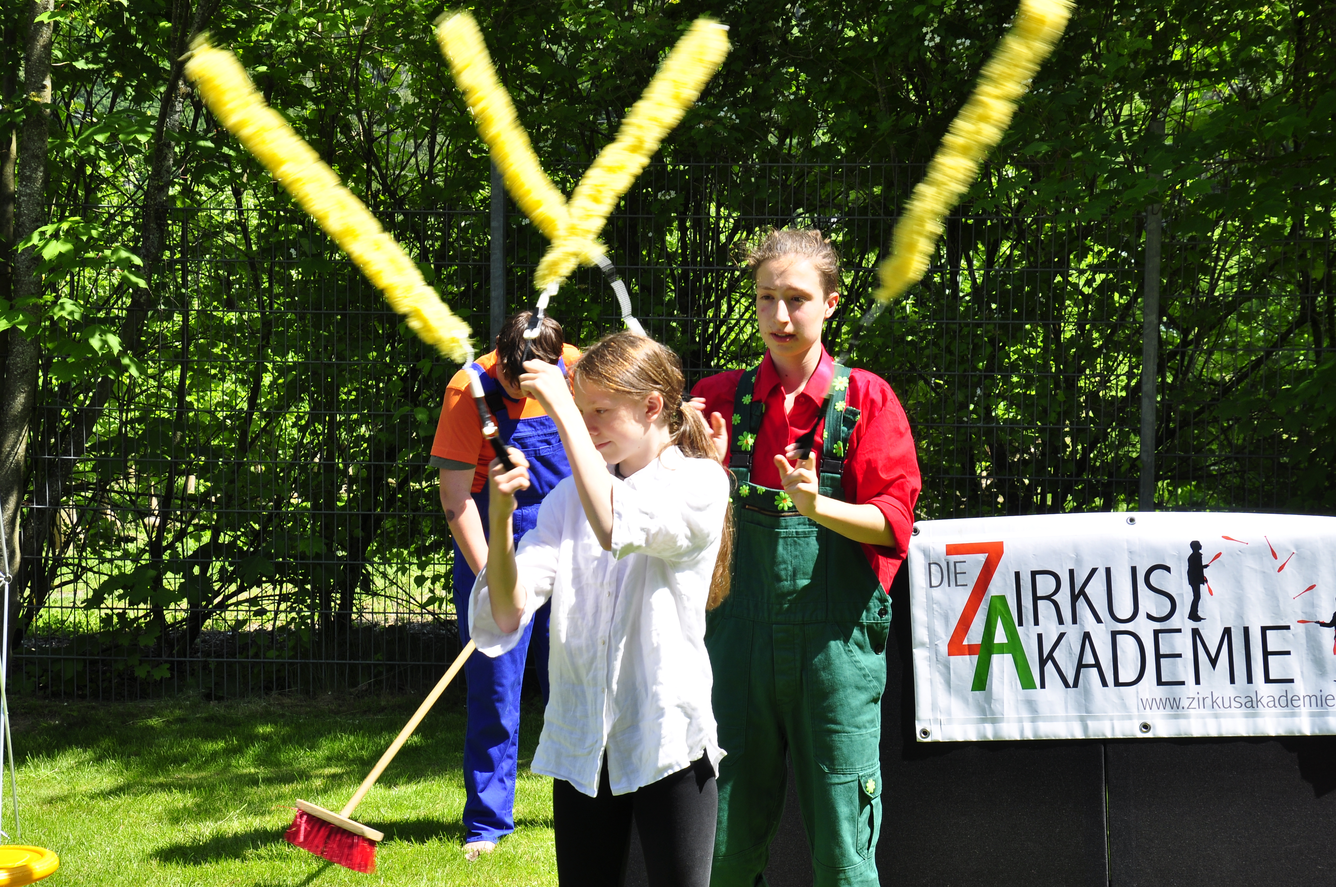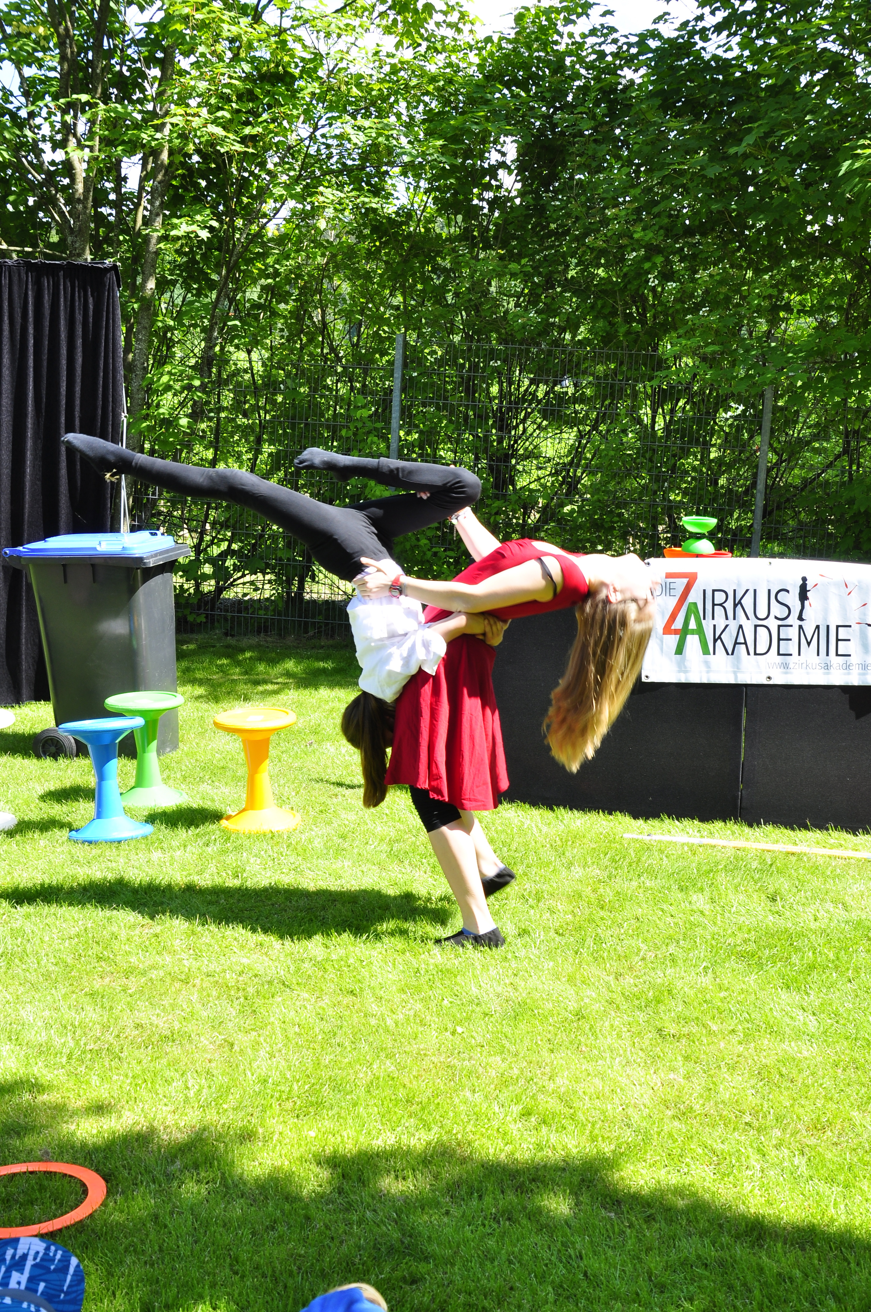 Die Zirkus-Tour-Gruppe im Bädle in Obereisenbach. Eine Vorstellung für den VauDe Kindergarten und Besucher.