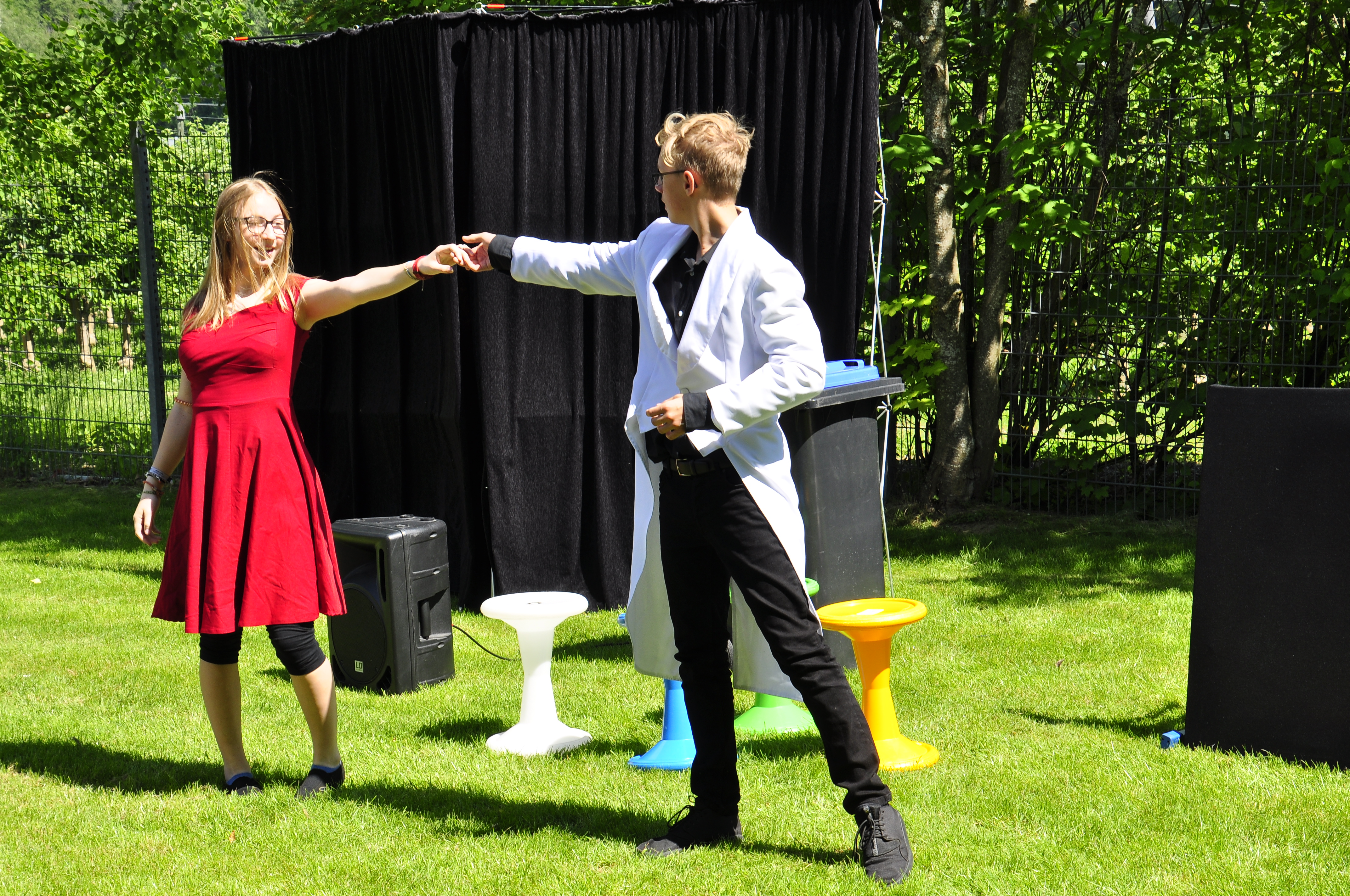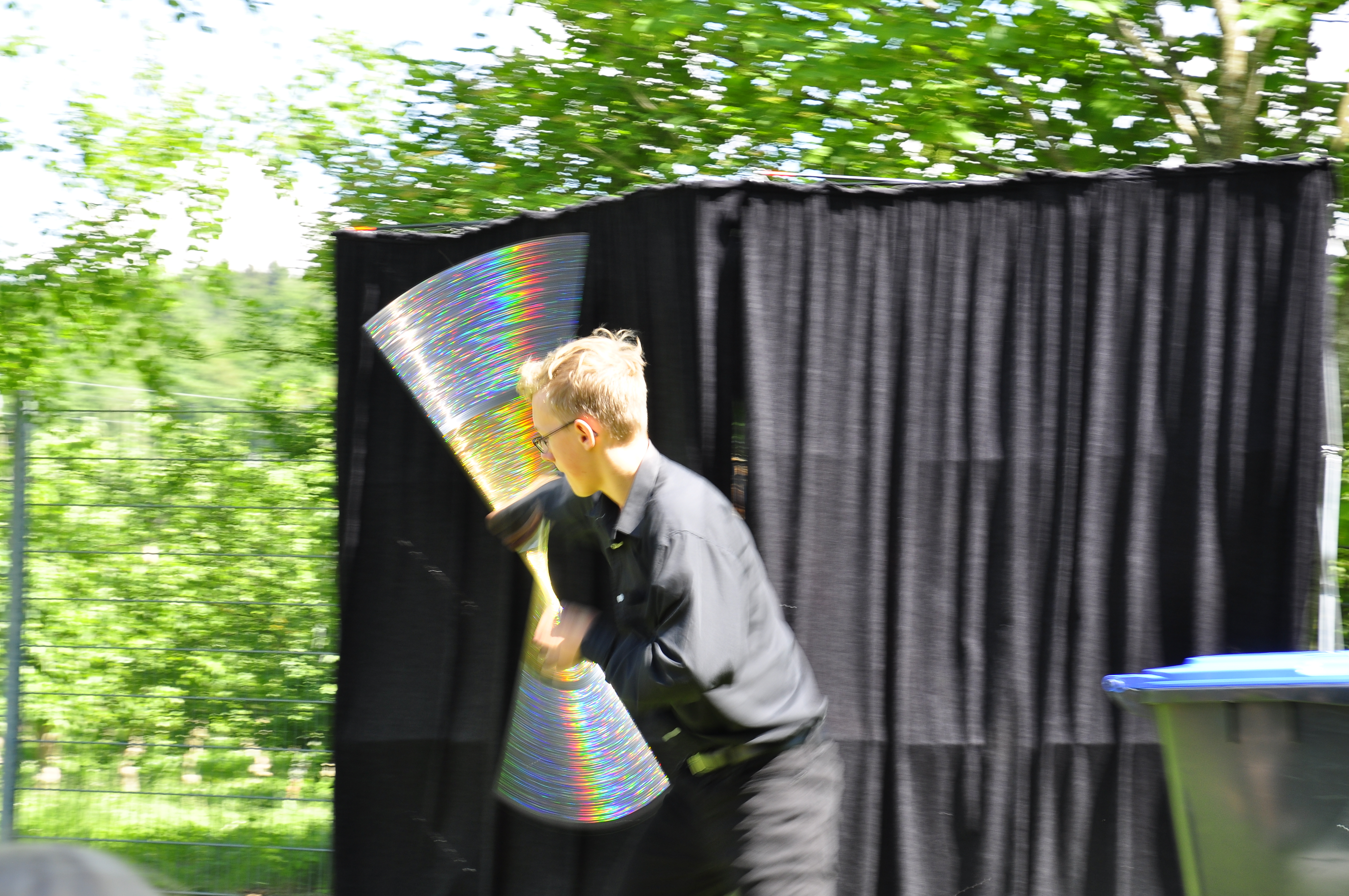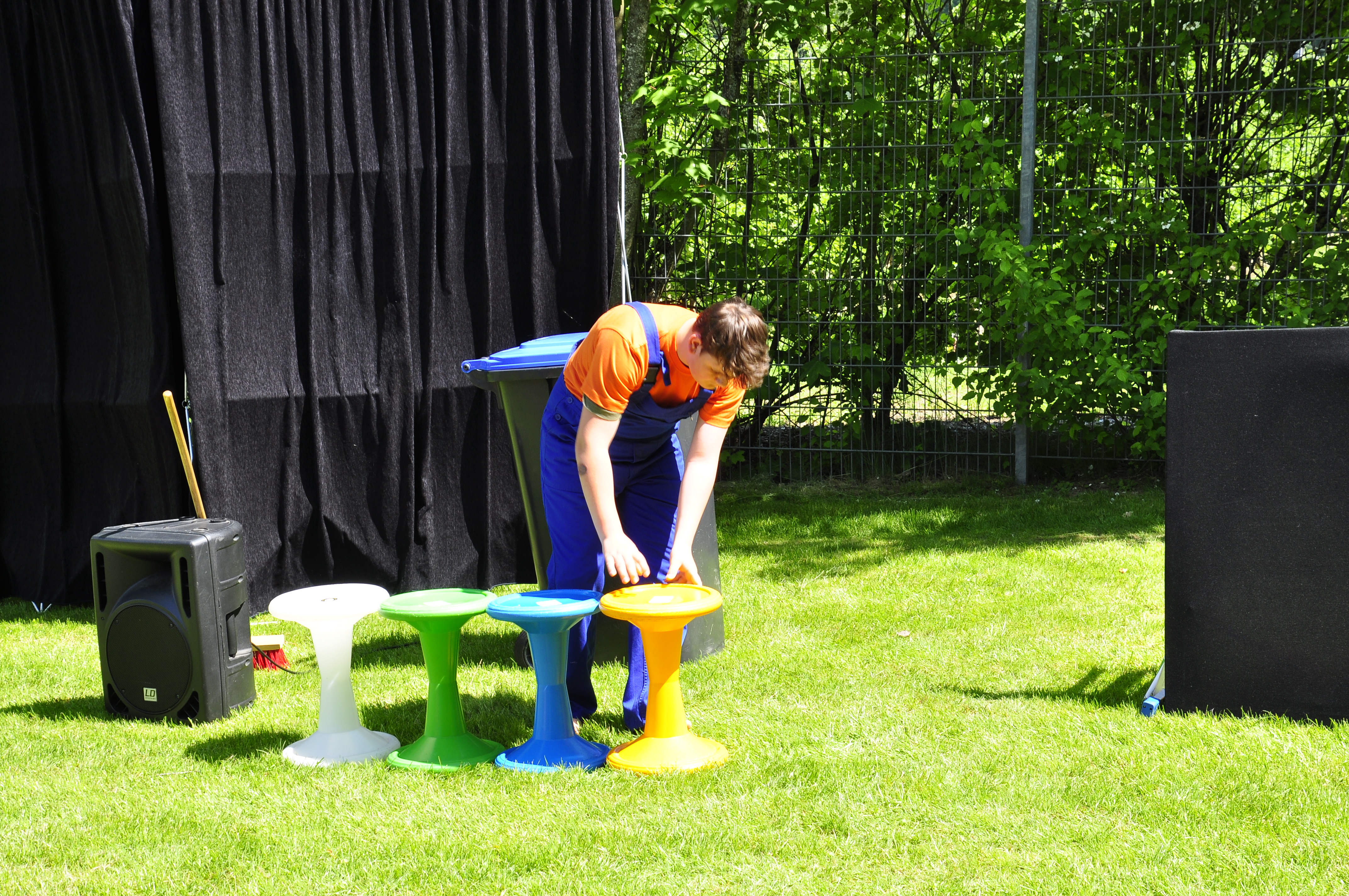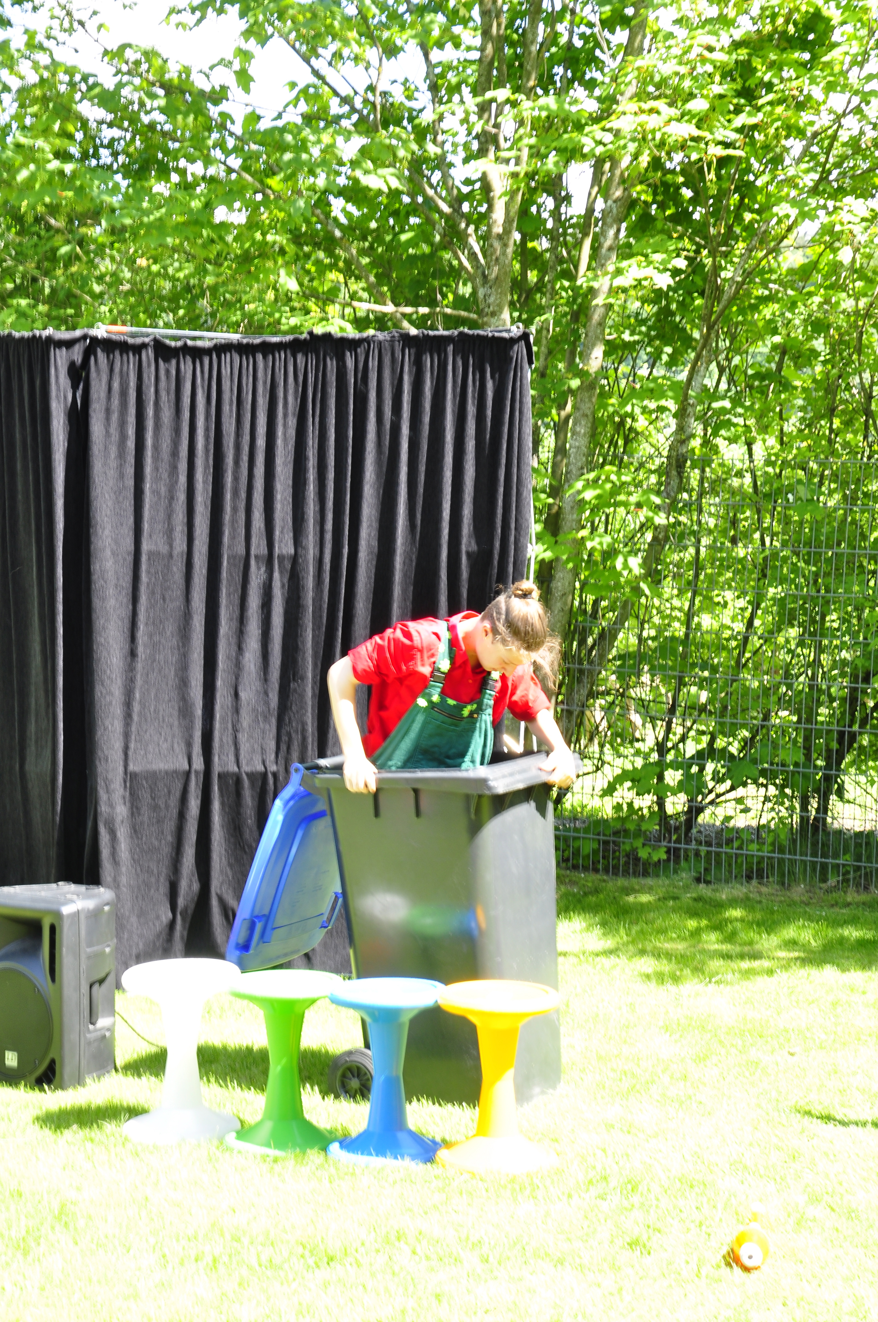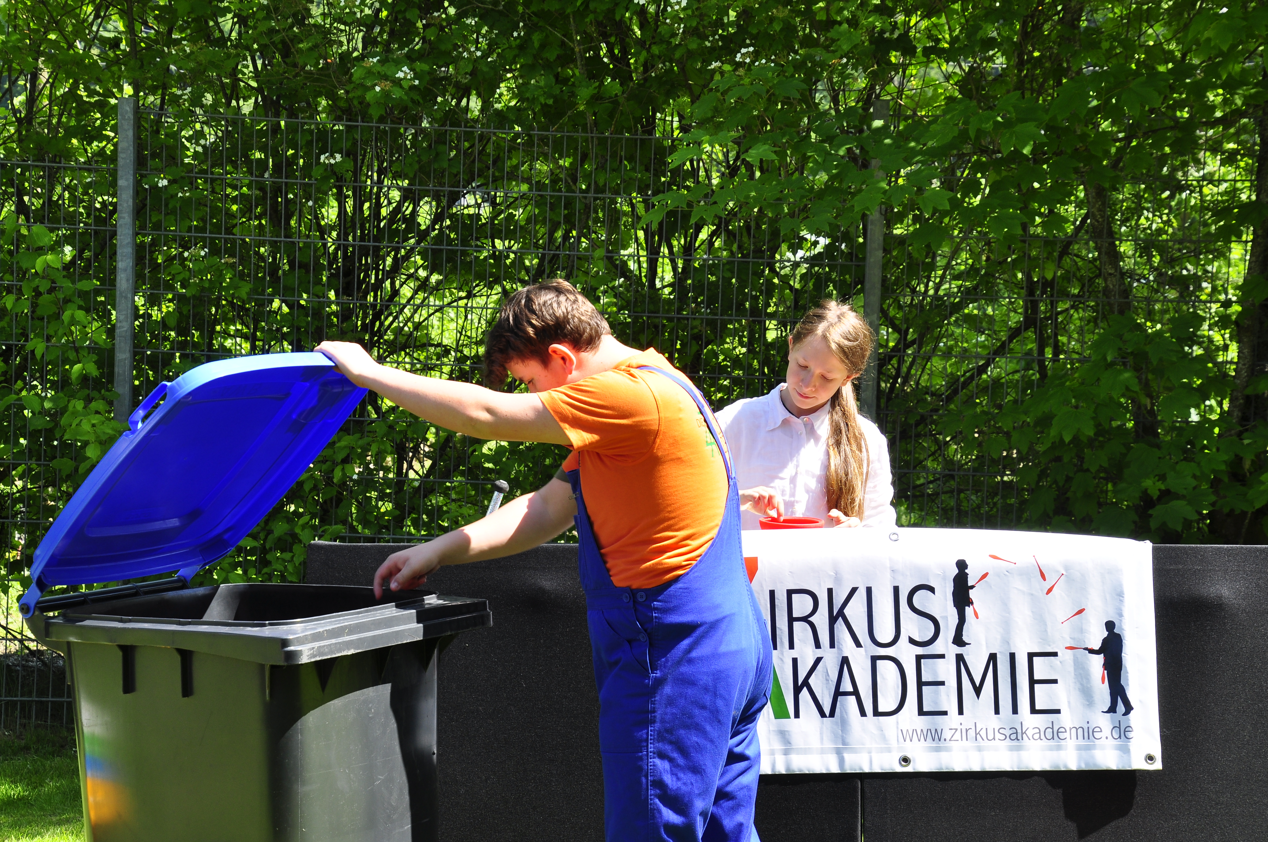 Die Zirkus-Tour-Gruppe im Bädle in Obereisenbach. Eine Vorstellung für den VauDe Kindergarten und Besucher.