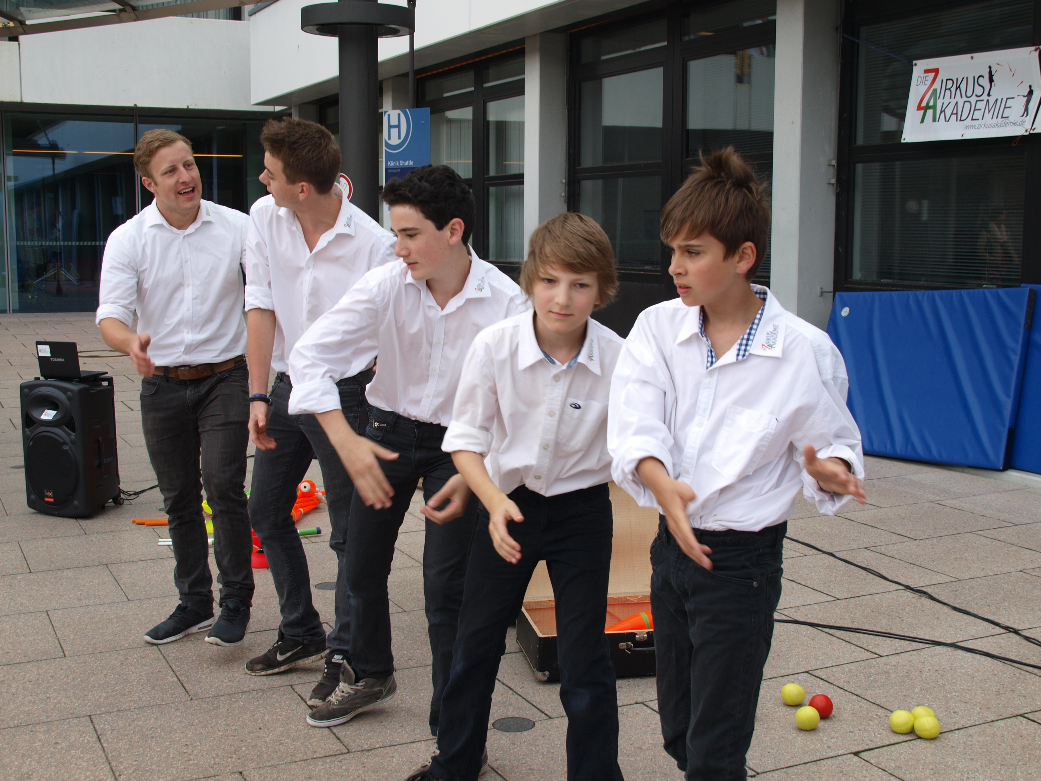 40 Jahre Klinikum in Friedrichshafen. Die ZirkusAkademie gratuliert zum Fest mit einer Blues -Brother-Show.